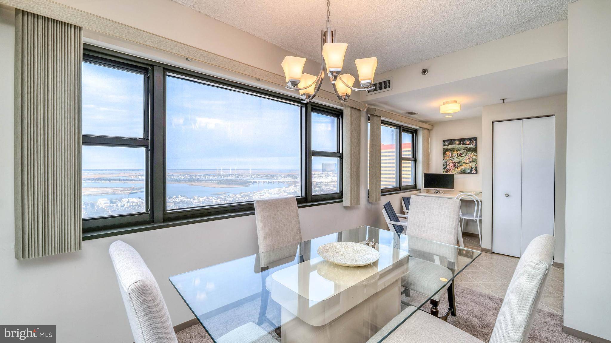 Welcome to luxurious oceanfront living at the prestigious Ocean Club Condominiums in Atlantic City! This desirable 1-bedroom, 1.5-bathroom unit offers a comfortable and stylish retreat with stunning views. Step inside to an inviting living space featuring neutral tones and plush carpeting, creating a serene atmosphere. The living room is spacious, accommodating ample seating, including a sofa, loveseat, and arm chair centered around a striped ottoman. Large sliding glass doors and windows flood the space with natural light and frame breathtaking views of the city and water. Adjacent to the living area is the dining nook, perfect for meals with a contemporary glass-top table and four upholstered chairs.The bedroom continues the comfortable feel with a bright, airy aesthetic, a large window, and a cozy queen-sized bed with crisp white linens, complemented by modern artwork. Residents of the Ocean Club enjoy an unparalleled lifestyle with exceptional building amenities including 24/7 security, a year-round pool, a 24-hour gym, and pets are welcomed. Enjoy the convenience and peace of mind of this well-managed, amenity-rich community. Please note there is currently a special assessment of $442.57 per month due to ongoing balcony construction.